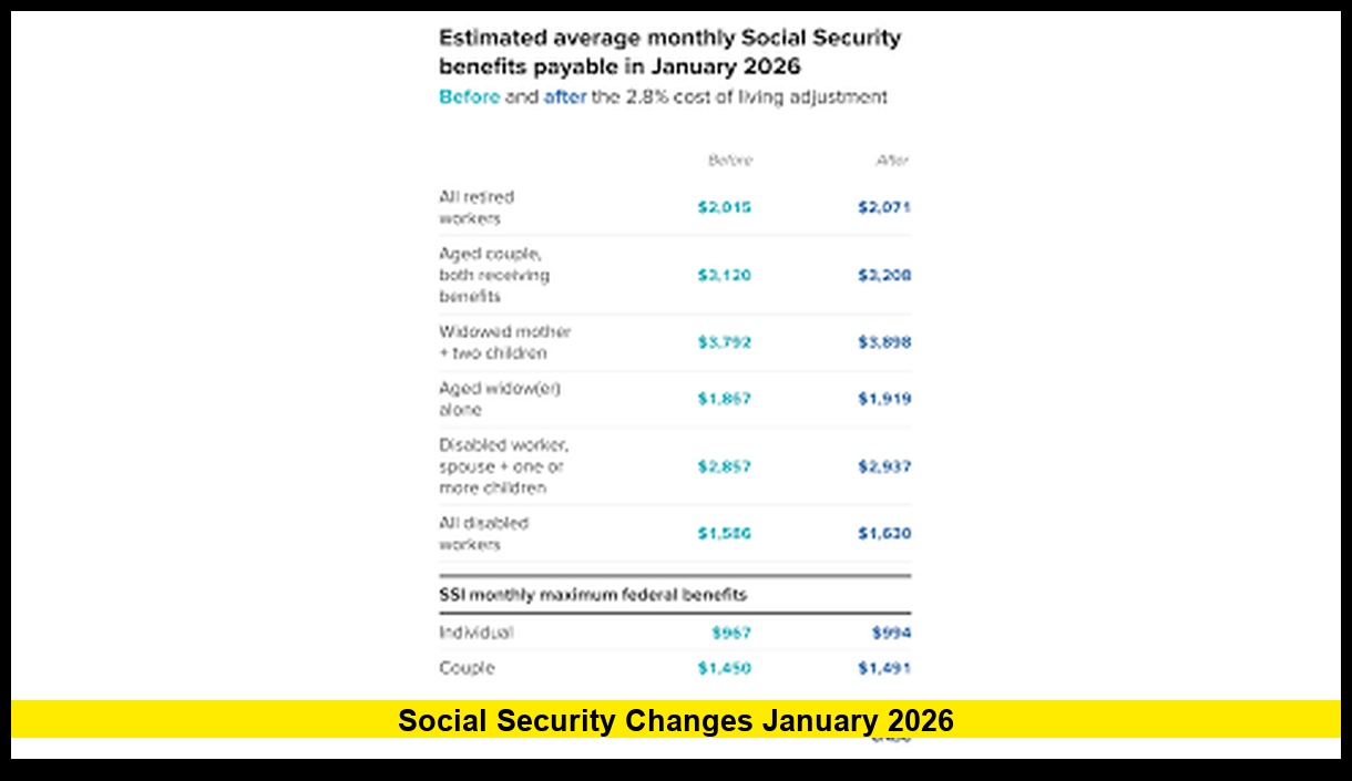 The most important part of the social security changes january 2026 is the officially confirmed 2.8 percent cost-of-living adjustment, commonly known as COLA. This increase applies to Social Security retirement, disability, survivor benefits, and Supplemental Security Income.